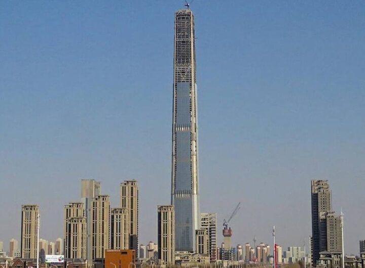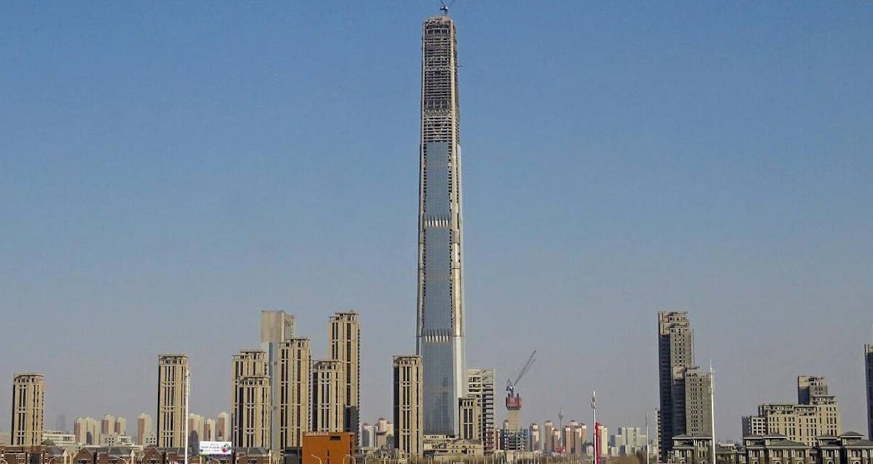 Çin’in Tianjin kentinde inşa edilen ve 2009 yılından beri tamamlanmamış olan 596 metrelik Goldin Finance 117 gökdeleni,...