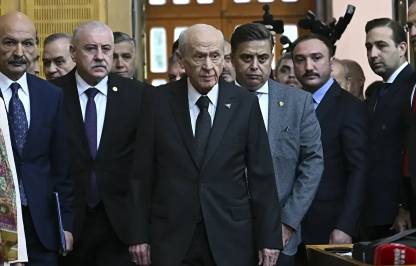 MHP Genel Başkanı Devlet Bahçeli’nin partisinin TBMM’deki Grup Toplantısı’nda ceketine taktığı rozet ve parmağındaki yüzük dikkat çekti.