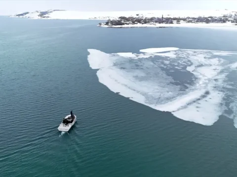 Nazik Gölü’nde Buzlar Çözülüyor: Balıkçılar Gölde Av Peşinde