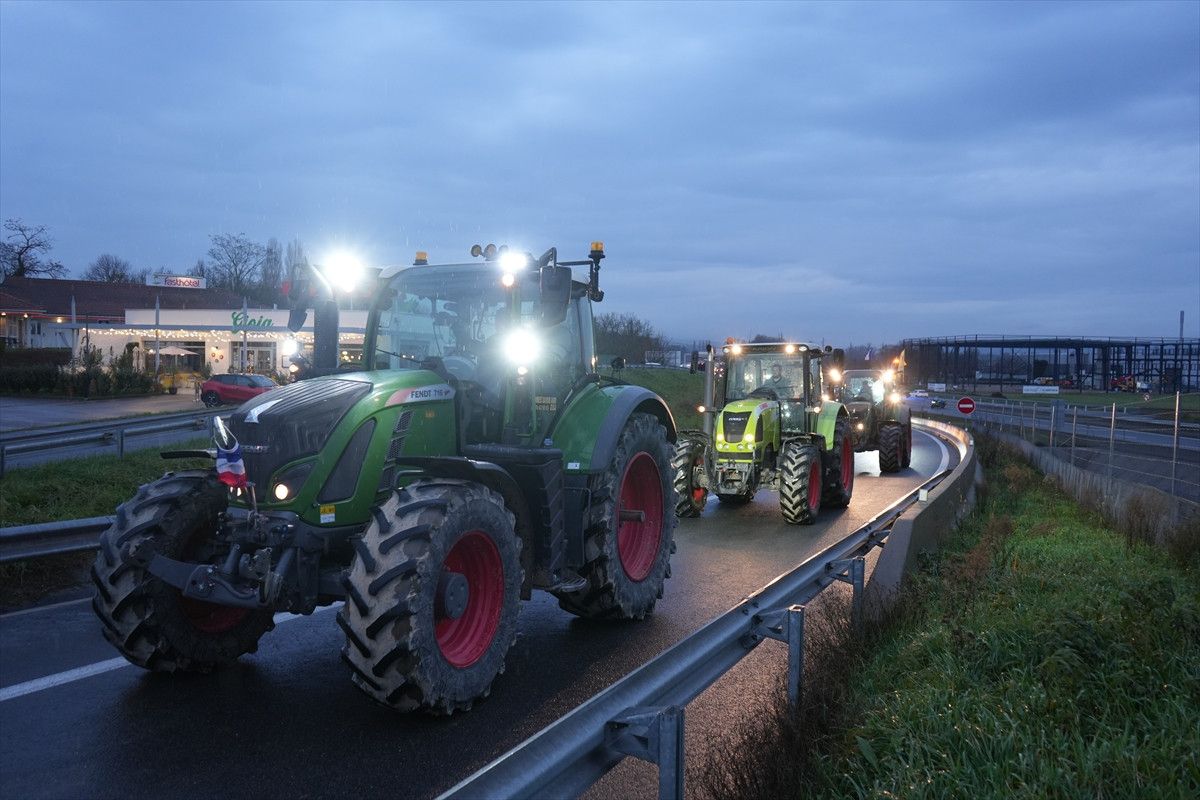 Fransa’nın Saone-et-Loire vilayetine bağlı Macon kentinde çiftçiler, ülke genelinde süren tarım protestoları kapsamında ana ulaşım güzergâhlarında eylem yaptı. Göstericiler, traktörlerle ve çeşitli araçlarla ulusal yolu kapatarak çift yönlü trafiği durdurdu.