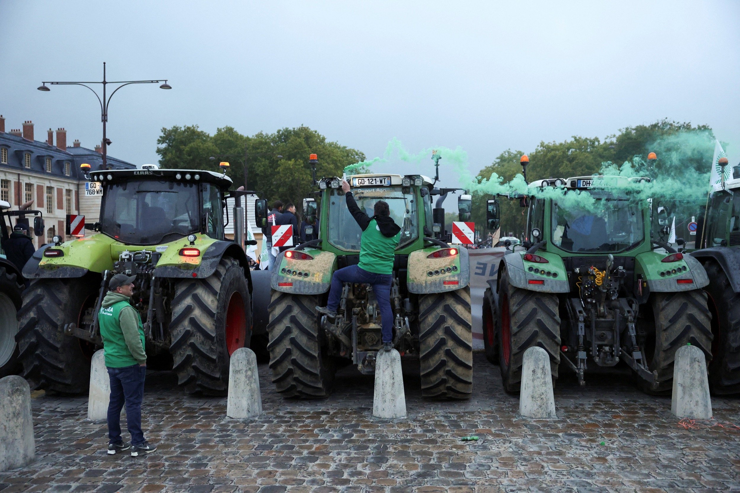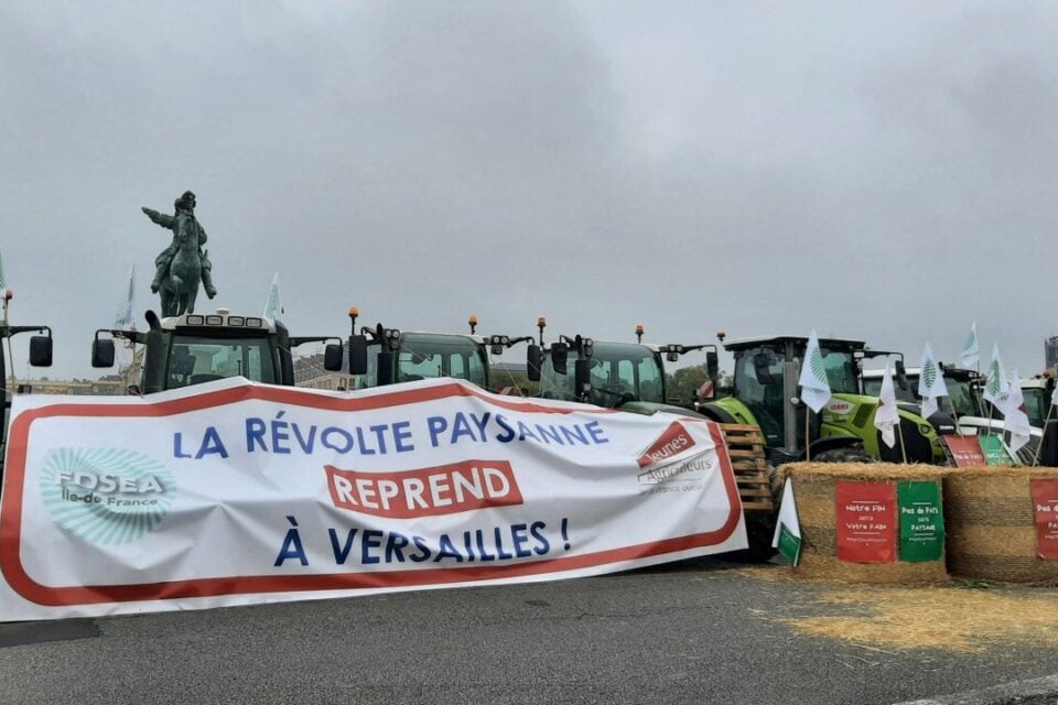 Fransa’nın sembolik mekanlarından Versay Sarayı’nın önü traktör ve çiftçilerle dolu sıra dışı bir manzaraya sahne oldu. Ülke genelinde düzenlenen ulusal çaplı eylemlerin parçası olarak yaklaşık yüz çiftçi, beraberinde getirdikleri 15 traktör, Place d’Armes meydanında buluştu.
