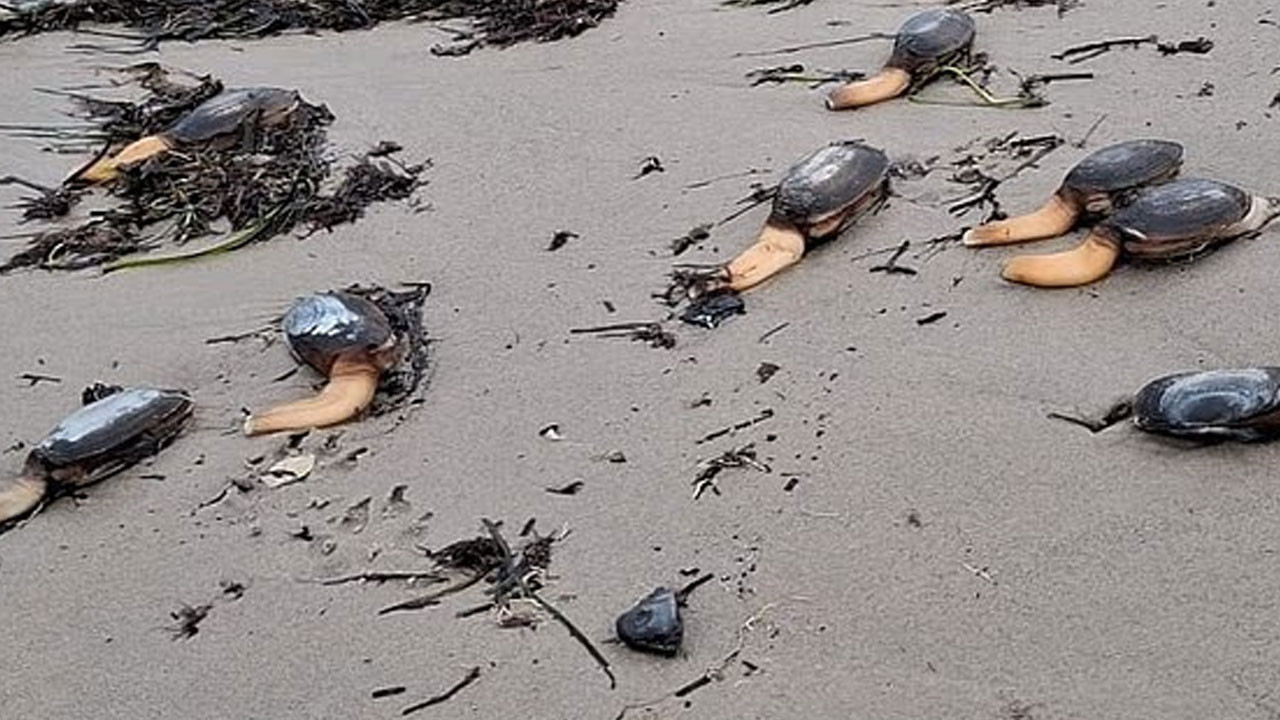 İngiltere’nin Dorset kıyılarında, Studland Bay sahilindeki garip manzara görenleri şaşırtıyor. Kumların üzerine yayılan tek ayaklı ve etsi uzantılarıyla dikkat çeken binlerce canlı, uzaylıları andırıyor. Ancak bu canlılar, aslında deniz tabanından gelen Su Samuru Midyeleri. Doğu rüzgarları ve dev dalgalar, midyeleri kıyıya sürükleyerek bölge sakinlerini şaşkına çevirdi. Bu olay, son yılların en ilginç doğa olaylarından biri olarak nitelendiriliyor. Oval kabukları ve uzun sifonlarıyla bilinen canlılar, dalgaların etkisiyle hayatını kaybetti. Uzmanlar, hayatta kalan midyelerin tekrar denize dönme ihtimalinin düşük olduğunu belirtiyor. 2018’deki benzer felaketten sonra midye populasyonunun toparlanması ise ekosistemin sağlığını gösteriyor. Sahilde görenlerin hayretle baktığı büyük midyeler, kıyı kuşları için besin kaynağı oluşturuyor.