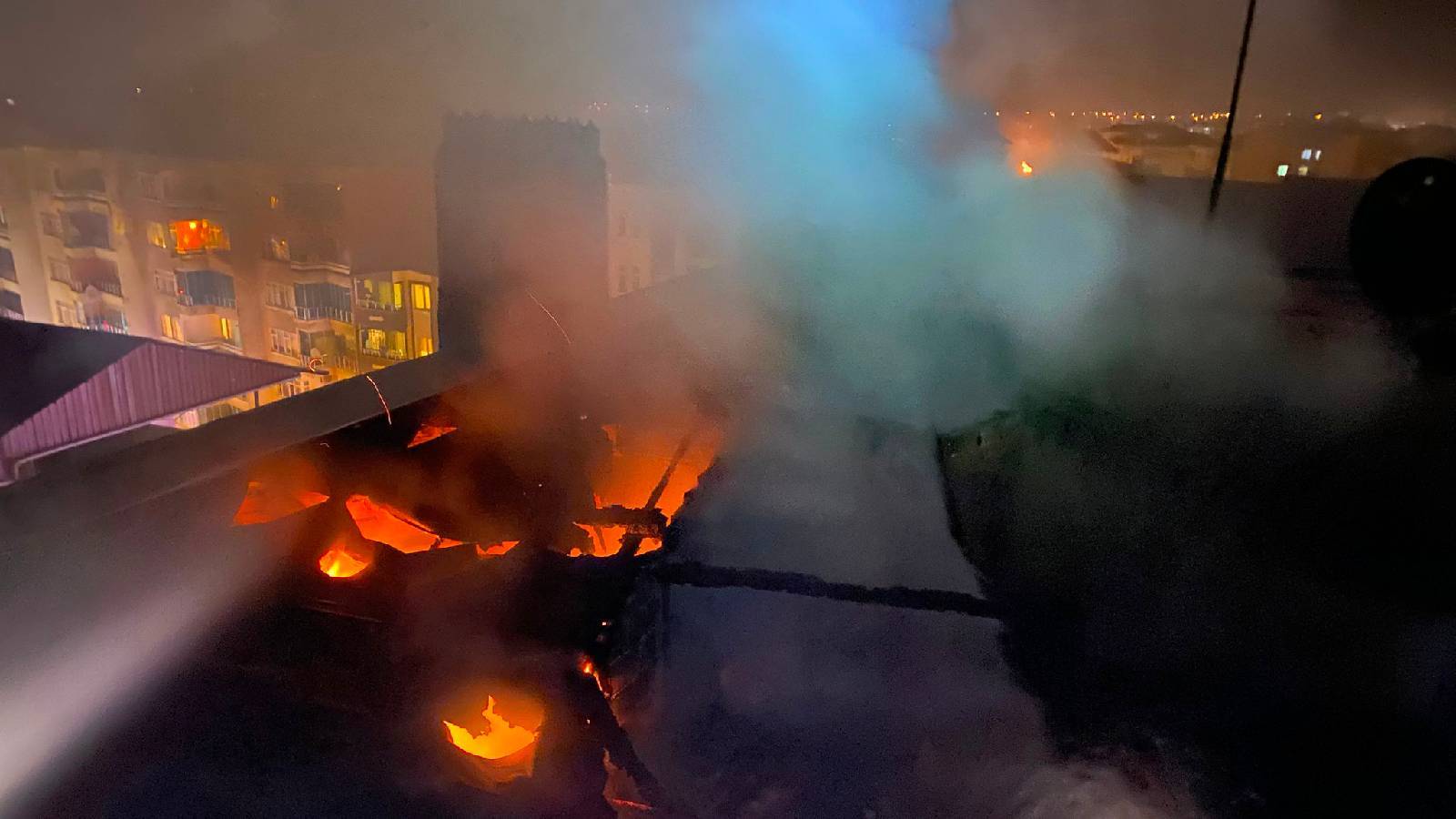 Samsun’un Bafra ilçesinde 7 katlı binanın çatı katında çıkan yangın, itfaiye ekipleri tarafından söndürüldü.